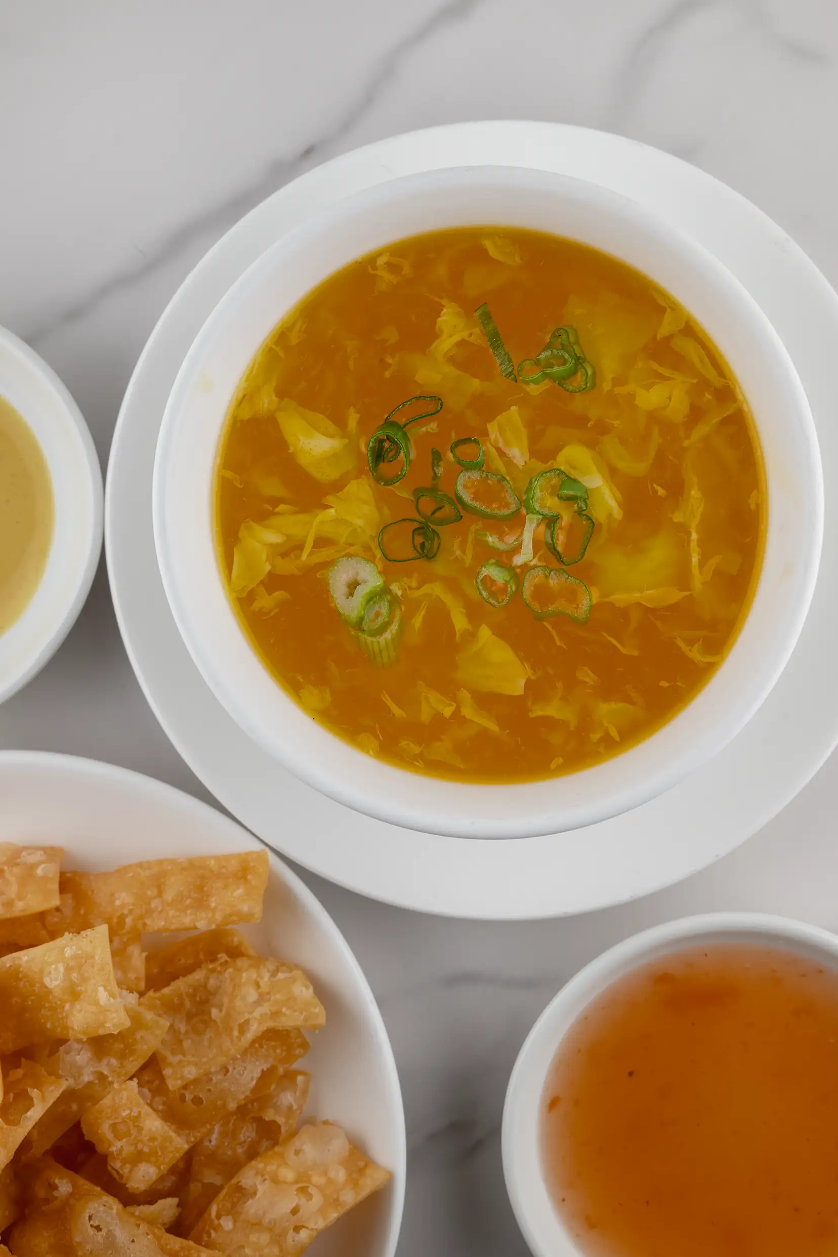 Classic Chinese soup made with beaten eggs, chicken broth, and scallions.
